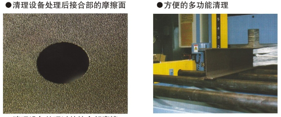 使用此設備處理H鋼的結合部摩擦面與打磨作業相比較,時間短、效率高、效果好。