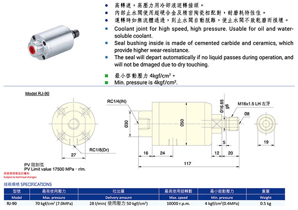 冷卻液回轉接頭內附止水閥自動開閉機構(RJ-90)