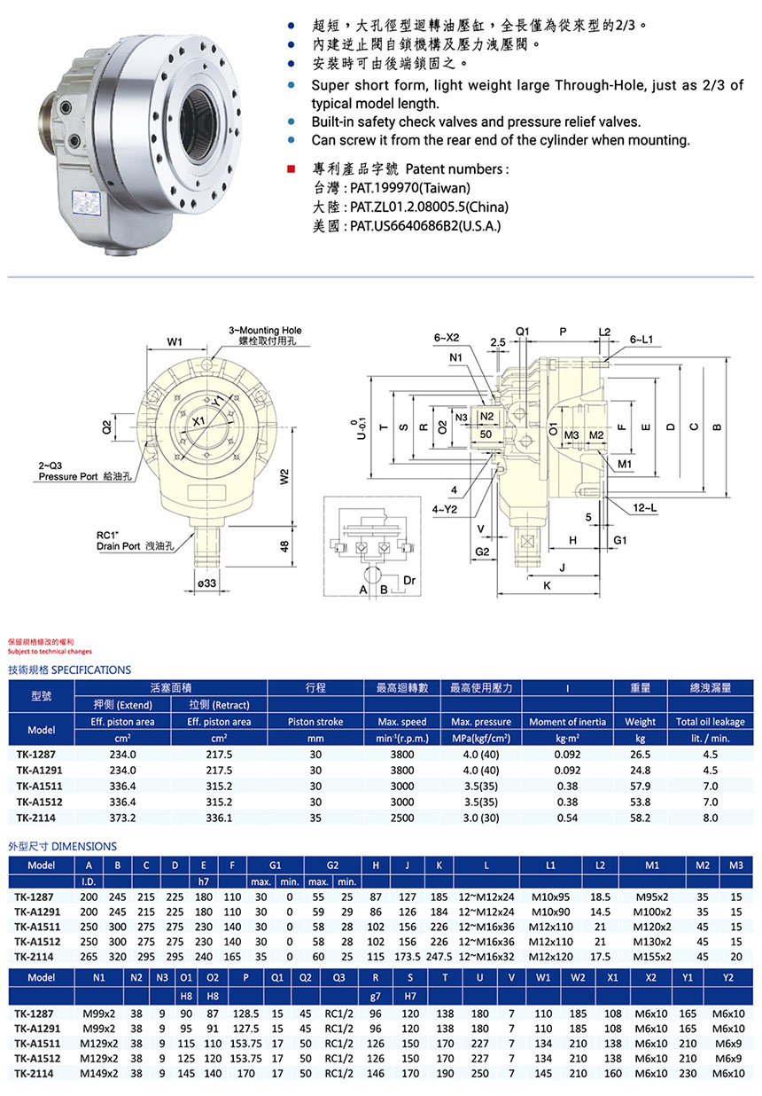 TK超短型中空回轉(zhuǎn)油壓缸