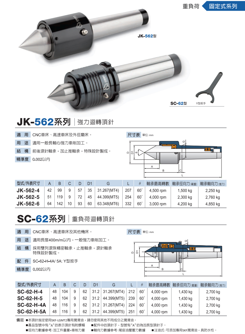 JK-562 SC-62重負荷回轉頂針
