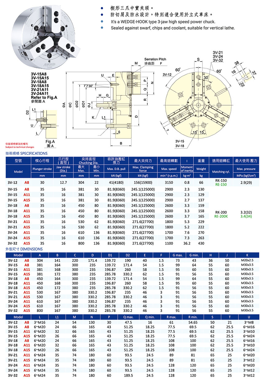 3V-A 立車用中實動力夾頭