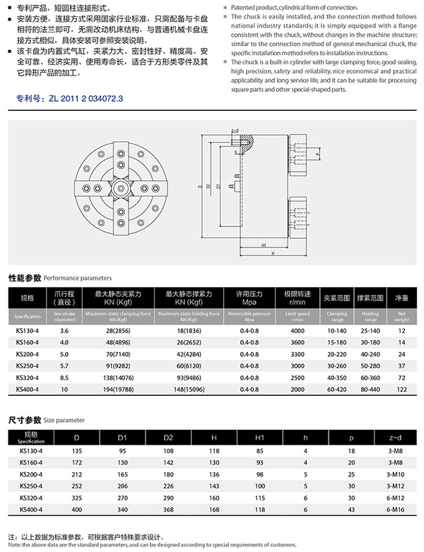 四爪中實氣動卡盤